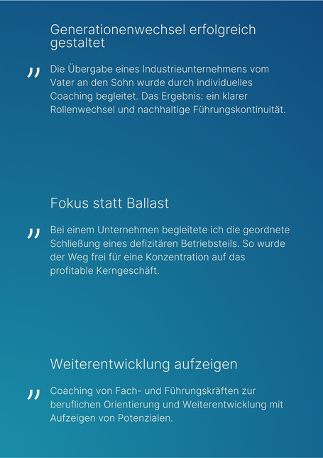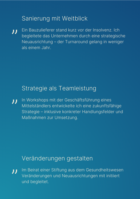 Mit über 40 Jahren Erfahrung in Führungsaufgaben, davon einige Jahre in der Geschäftsführung der deutschen Gesellschaften eines internationalen Familienunternehmens, begleite ich Unternehmen durch Veränderungen: praxisnah, strategisch und wertorientiert. Ich kenne die Dynamik mittelständischer Strukturen und entwickle gemeinsam mit Ihnen Lösungen, die nachhaltig wirken.